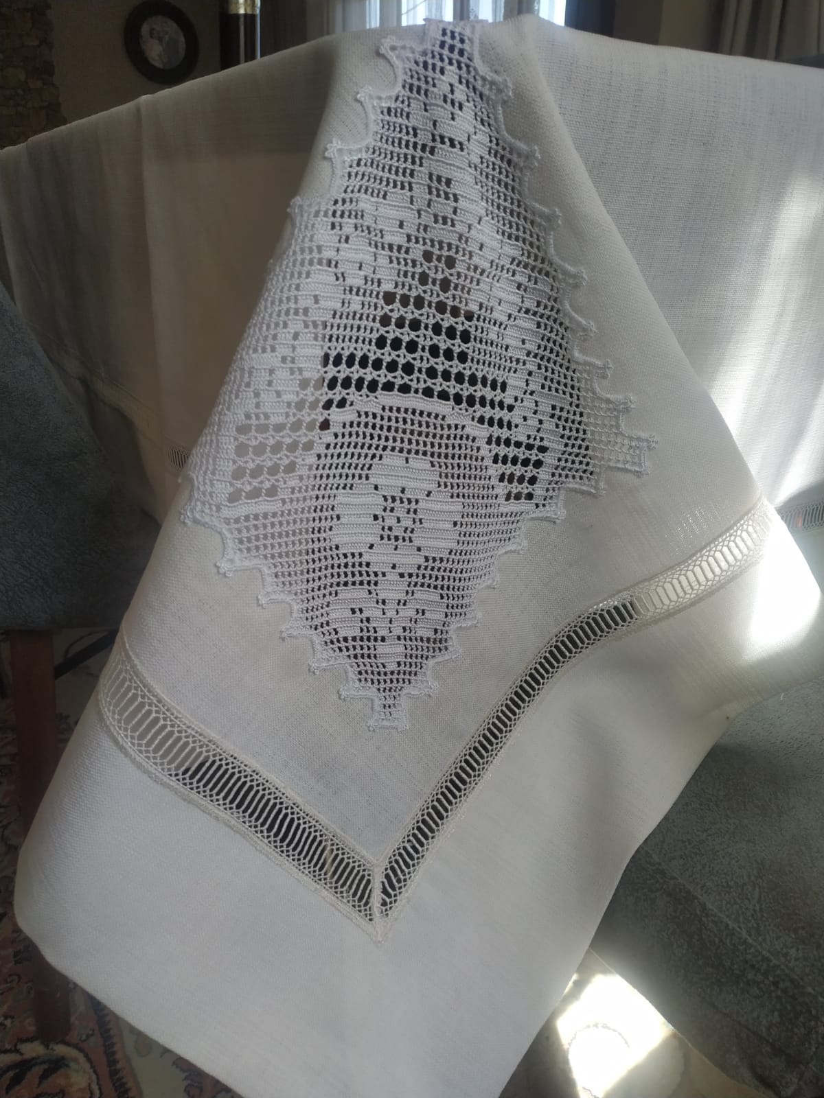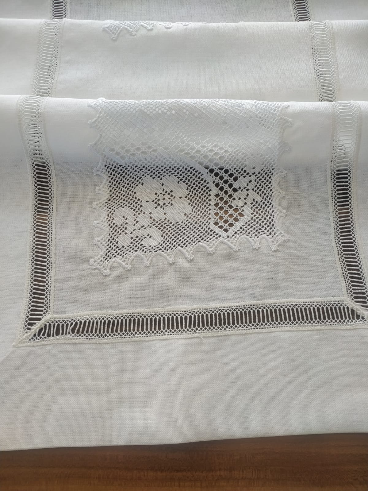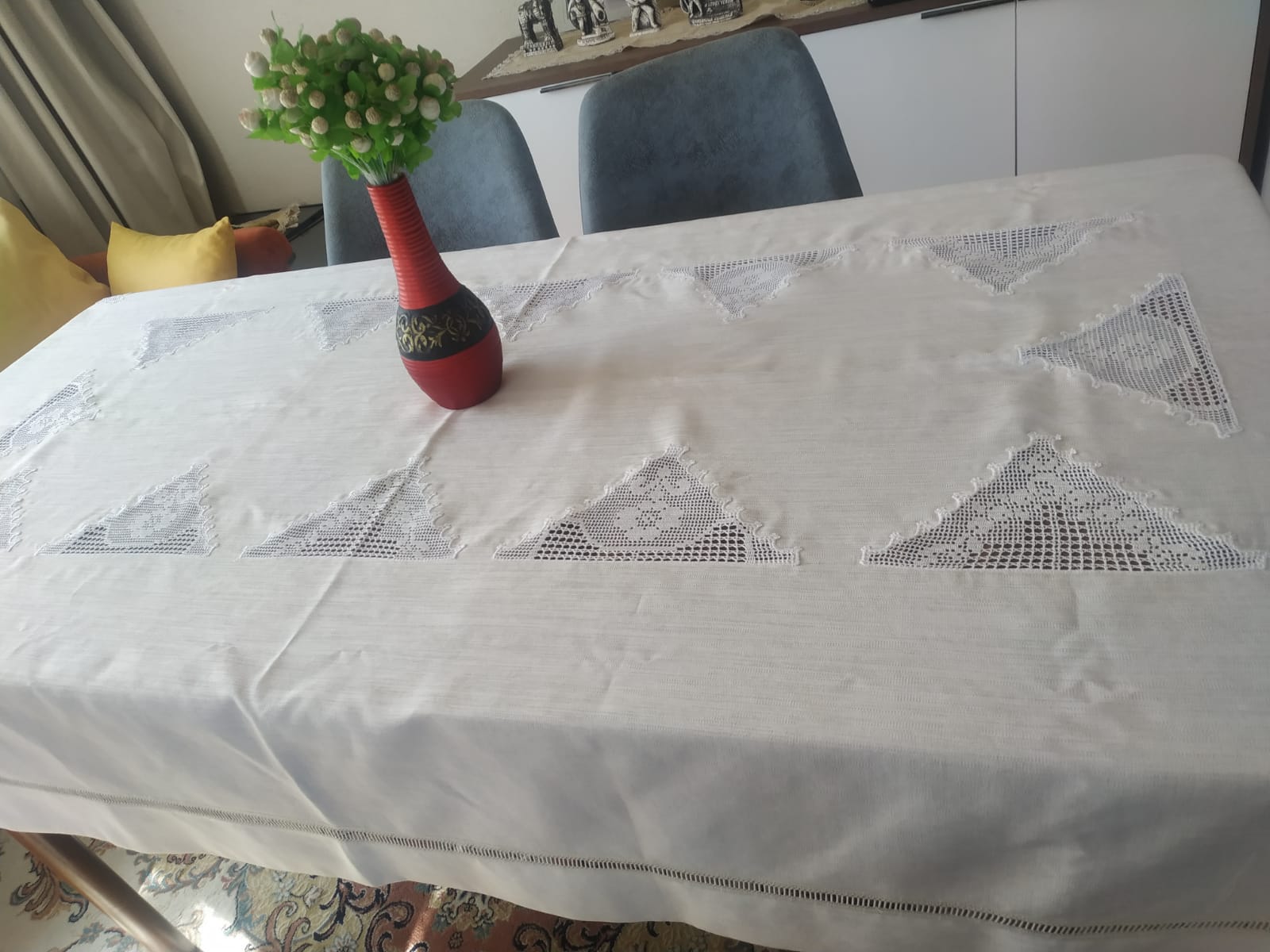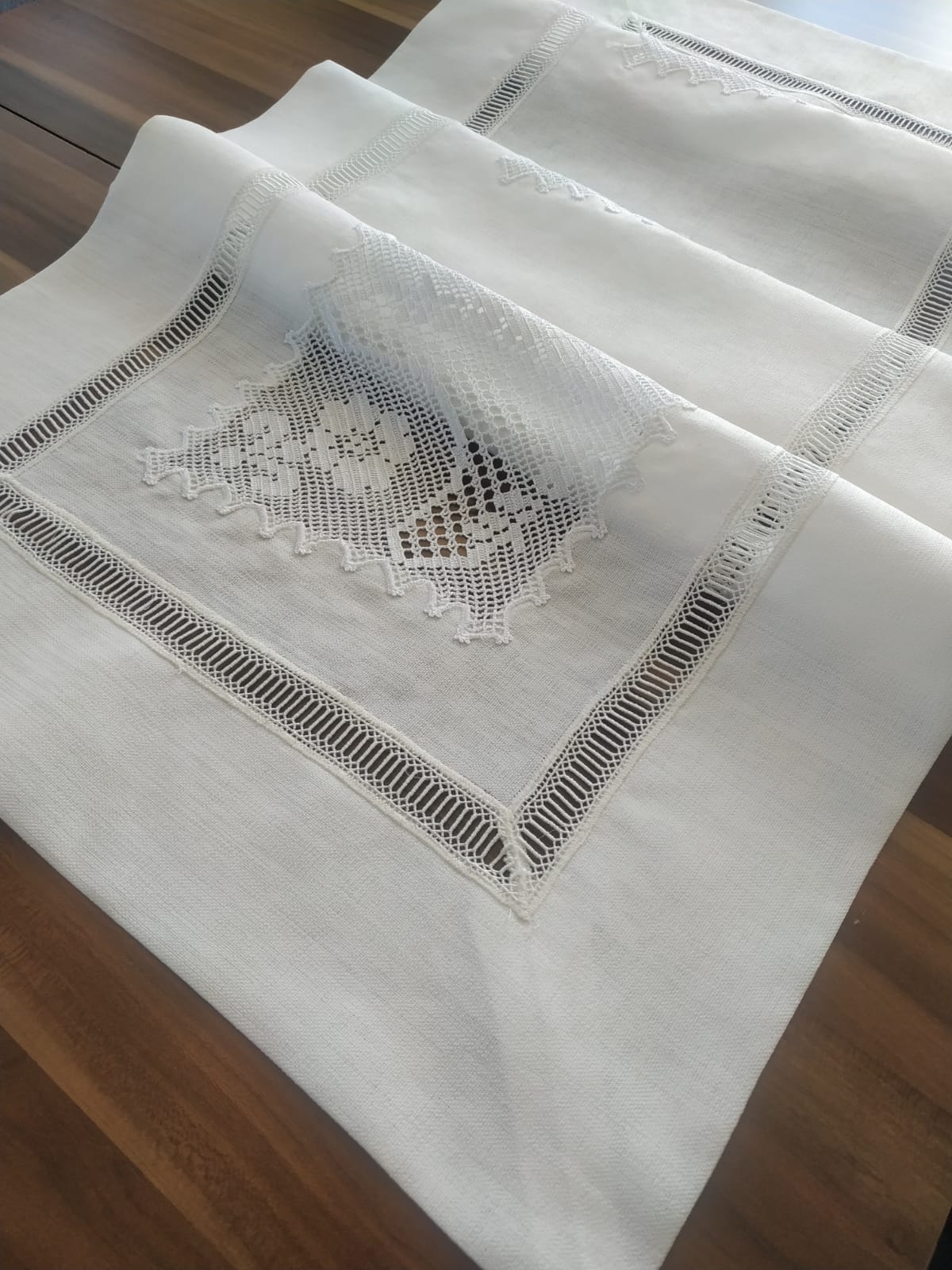 Masa grubu ve peçete gardenya kumaş el örgüsü dantel kolvel ile çalışılmıştır, çok emek isteyen bir işçiliği bulunmaktadır.